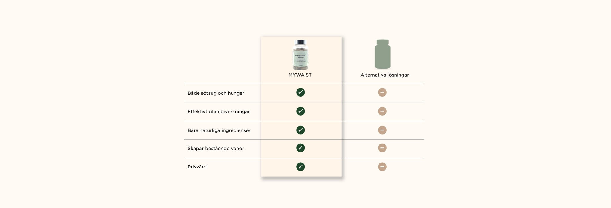 MYWAIST är utvecklad för dig som vill gå ner i vikt på ett hälsosamt och effektivt sätt. Den unika kombinationen av Caralluma fimbriata, Gynostemma pentaphyllum, druvkärneextrakt och berberin kan hjälpa till att: